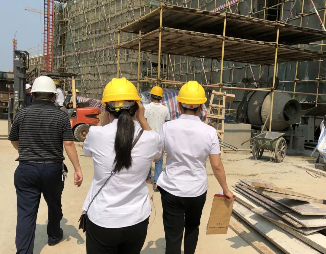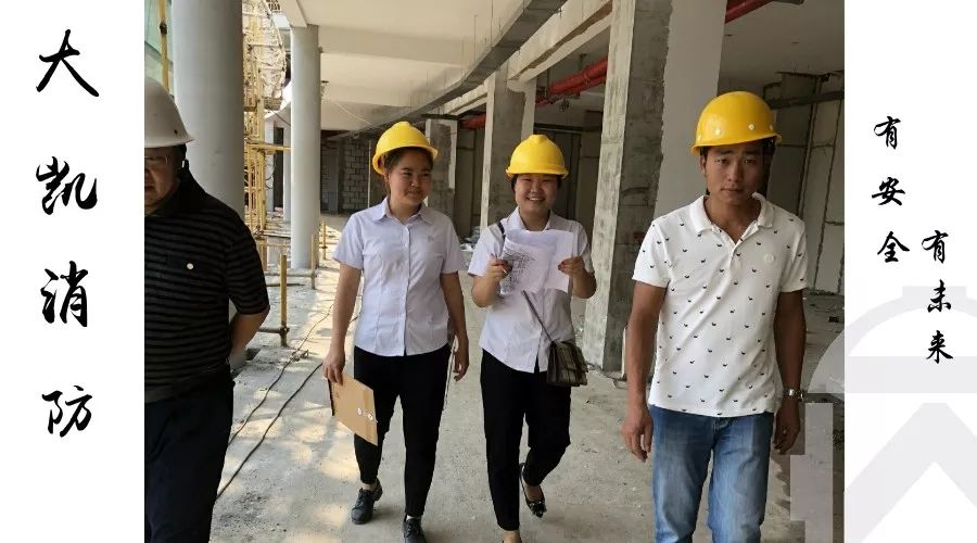 海南大凱消防安全工程有限公司消防設計部部門經理和資深設計師頂著高溫和烈日到達正在建設中的海南北大附小,為即將著手繪制的消防設計圖進行現場勘查。
